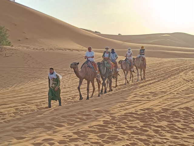 আমার সামনের উটের পিঠে এবেনি আর পেছনে ক্লারার মেয়ে। একে একে উটের পিঠে বসার পর উটগুলো দাঁড়িয়ে পড়ল। আমার গ্রুপের সব ছেলেমেয়ে লিতাম মাথায় বেঁধে নিয়েছেন। উটের পিঠে সবাইকে এখন আরব্যোপন্যাসের কাফেলা বলে মনে হচ্ছে।