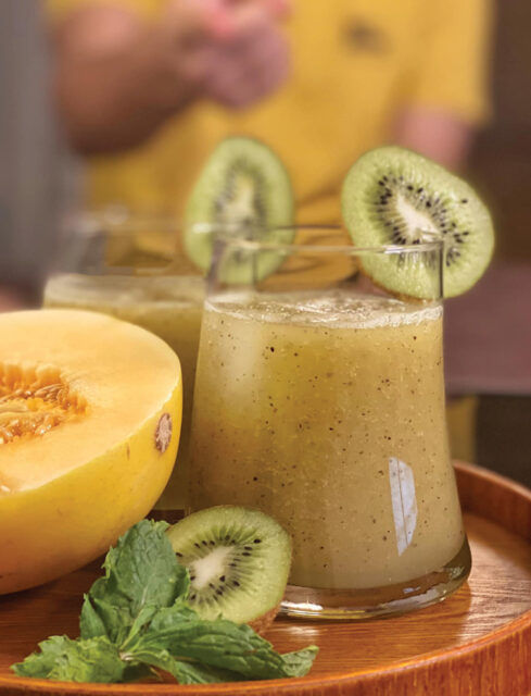 প্রণালি: প্রথমে জুসারের সাহায্যে মেলন জুস করে নিন। এবার ব্লেন্ডারে এর সঙ্গে কিউই, পুদিনাপাতা, লবণ, বরফ ও পানি মিশিয়ে ব্লেন্ড করুন।
