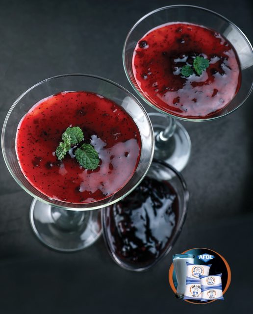 প্রণালি: জেলাটিন শিট পানিতে ভিজিয়ে রাখুন। পানির সঙ্গে দুধ মিশিয়ে জ্বাল দিন। এবার ভ্যানিলা, চিনি ও ক্রিম মিশিয়ে জ্বাল দিয়ে নামিয়ে নিন। পানি থেকে জেলাটিন তুলে দুধের মিশ্রণের সঙ্গে ভালোভাবে নেড়ে মিশিয়ে নিন। এবার সার্ভিং গ্লাসে কুসুম গরম মিশ্রণটি ঢেলে ফ্রিজে রেখে দিন ২ ঘণ্টা। উপরে ব্লুবেরি দিয়ে আবার ফ্রিজে রেখে (৩-৪ ঘণ্টা) ঠান্ডা করে পরিবেশন করুন।