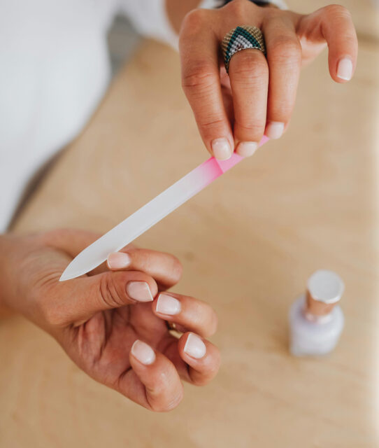 স্যালনে হয়তো ফোনে কিংবা রিল্যাক্সেশনে ব্যস্ত থাকায় খেয়াল করা হয় না, নেইল আর্টিস্টরা ফাইলিংয়ে যে সময় ব্যয় করেন, তার ২০ শতাংশ সময়ও নেইল পেইন্ট অ্যাপ্লিকেশনে ব্যয় করেন না। তার মানে প্রিপারেশনই সুন্দর নখ পাবার চাবিকাঠি। নেইল পেইন্ট সঠিকভাবে বসাতে চাইলে নেইল ফাইল হওয়া চাই একদম অন-পয়েন্ট। তাই তাড়াহুড়ো করা যাবে না কোনোভাবেই। সময় নিয়ে যথাযথভাবে সারার আরেকটা টোটকা হলো—ধরে নিতে হবে, নিজের নয়; বরং অন্যের নেইল ফাইলিং করে দেওয়ার কাজ নেওয়া হয়েছে হাতে। সে ক্ষেত্রে খানিকটা অসুবিধা হলেও আঙুল ঘুরিয়ে একটু উঁচু করে ধরে রেখে ফাইল করলে ভালো ফল পাওয়া যাবে। নখের কোনাগুলোর একটু বিশেষ যত্ন নেওয়াই লাগে; কারণ, কিউটিকল কিংবা ইন-গ্রোন নেইল তৈরি হয়ে লুককে যেমন নষ্ট করে দিতে পারে, তেমনি নখে ব্যথার উদ্রেকও করতে পারে।