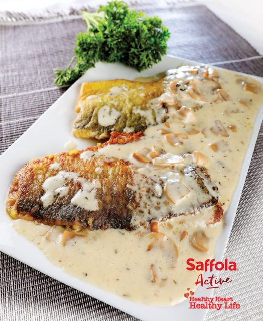 বেকড ফিশ উইথ ক্রিমি মাশরুম সস