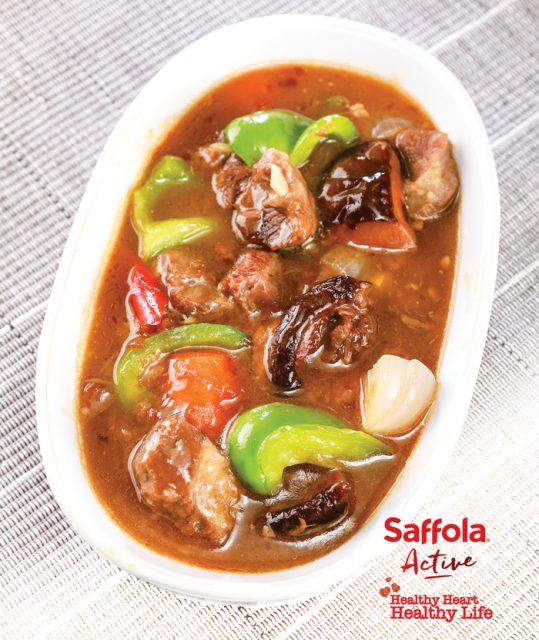 মূল রান্না: তেল গরম করে তাতে গাজর ভেজে নিন। তাতে আদা কুচি, রসুন কুচি দিয়ে নেড়ে হালকা ভাজুন। মাংস, ক্যাপসিকাম ও সব রকমের সস দিয়ে স্টার-ফ্রাই করুন, অর্থাৎ চড়া আঁচে তাড়াতাড়ি নেড়ে হালকাভাবে ভাজুন। মাংসের স্টক এবার সেই স্টার ফ্রায়েড মাংস ও সবজির মধ্যে ঢেলে দিন। তাতে গোলানো কর্নফ্লাওয়ার দিয়ে ঝোলটা এমনভাবে ঘন করুন, যাতে মাখা মাখা না হয়ে খানিকটা ঝোল ঝোল ভাব হয়। সবশেষে রান্না করা মাংসে সেসমি অয়েল ছিটিয়ে দিয়ে পরিবেশন করুন।