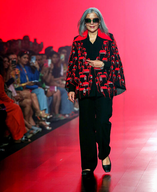 বয়স ৭১ বছর। কিন্তু সে যে শুধু একটি সংখ্যা, তা-ই প্রমাণ করে দেখিয়েছেন এই প্রথিতযশা অভিনেত্রী। ডিজাইনার শাহিন মান্নানের তৈরি বোল্ড রেড প্যান্ট স্যুট পরে মঞ্চে হেঁটে তিনি আরও বুঝিয়ে দেন, স্টাইলের ক্ষেত্রে বয়স মোটেই কোনো সীমাবদ্ধতা নয়।