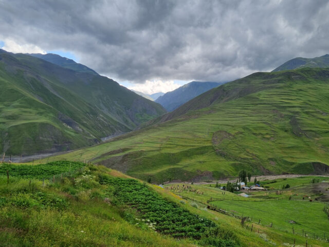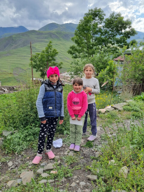পাহাড়ের ঢাল বেয়ে সরু পথ ধরে নামতে নামতে এক জায়গায় এসে থামলাম। এখানে এখন তিনজন পরি আকাশ থেকে নেমে এসেছে! এদের বয়স ৯-১০ বছর। নিজেদের মাঝে কলকল করেই যাচ্ছে। আপেলের মতো লাল লাল গাল আর আরও মিষ্টি হাসিতে পাহাড়ের আনন্দ বাড়িয়ে চলেছে। কী খুঁজতে এসে কী খুঁজে পেয়েছি, সে আমিই জানি। কে জানত এই দুর্গম, নির্জন, শান্তিময় গ্রামে কিছুক্ষণ পরপর আকাশ থেকে পরি নেমে আসবে! কে জানত, এমন অসম্ভব সুন্দর মখমলে ঢাকা সবুজ পাহাড় চুপি চুপি আমাকে রুশ দেশের রূপকথার জগতে নিয়ে যাবে!