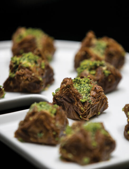উপকরণ [বাকলাভা]: ফিলো পেস্ট্রি ১ প্যাকেট, আনসল্টেড মাখন (গলানো) ১ কাপ, ডার্ক বা মিল্ক চকলেট (কুচি করা) ১ কাপ, আখরোট বা বাদাম বা পেস্তা (মিহি করে কাটা) ১ কাপ, কোকো পাউডার ২ টেবিল চামচ, চিনি আধা কাপ, দারুচিনিগুঁড়া (ঐচ্ছিক) আধা চা-চামচ।