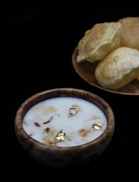 প্রণালি [শেষ ধাপ]: ভাজা লুচিগুলো টুকরো করে গরম পায়েসে দিয়ে ঢেকে রাখুন।