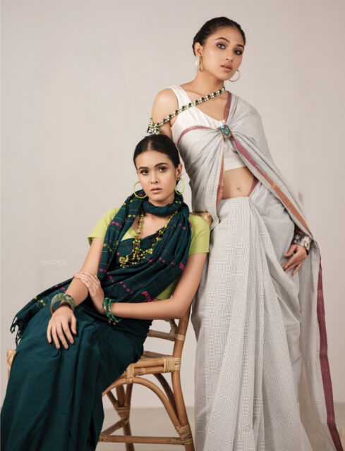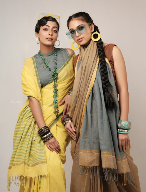 শাড়ি হয়ে উঠেছিল আনুষ্ঠানিক পোশাক। আলমারির তাকে জায়গা করে বসেছিল জমিয়ে। সেখান থেকে মিলেনিয়াল আর জেনারেশন জেডদের পাল্লায় পড়ে একদম ক্যাজুয়ালে সমাপন। ইস্তিরির বালাই নেই। দরকার নেই টানটানের। একদম নিজের মতো করে আপন মনে আলগা হাতে গায়ে জড়ানোর গ্রামার। বাহুল্যতার বিদায়। সামান্যে জুতসই। আনকোরা স্টাইলিং। নিত্যদিন নিরীক্ষায় শাড়ি ফ্যাশন ফাইল