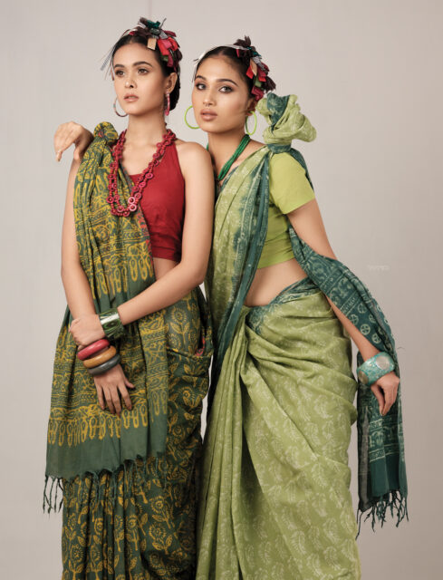 ক্ল্যাসিক আর কনটেম্পরারির বন্ধন। নরম সুতোয় বোনা। মোমবাটিকের মাধুকরী রূপ। পরার ঢং নিয়ে নিরীক্ষা দারুণ রকম