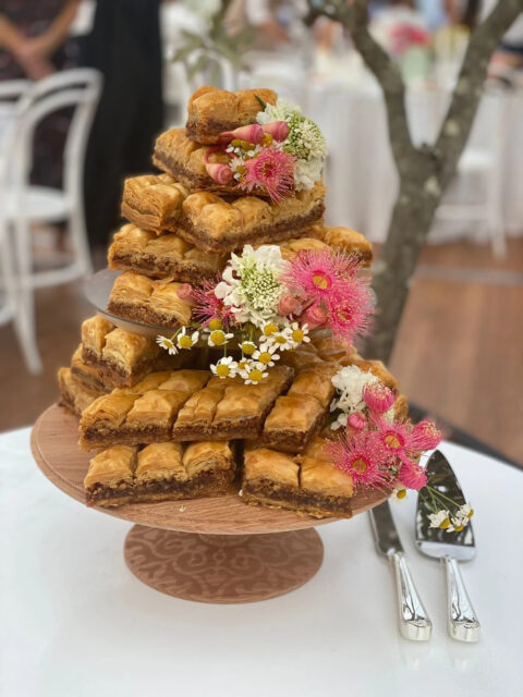 কোনো গ্রিক বিয়েতে গিয়ে, ডেজার্ট টেবিলে বাকলাভার উপস্থিতি দেখে চমকে যাবেন না যেন! ১০ থেকে ১১ স্তরের পাতলা ডোয়ে বানানো এই প্যাস্ট্রি সে দেশের একটি ঐতিহ্যবাহী বিয়ের খাদ্যপদ। সাধারণত টুকরো টুকরো করা আখরোট বা পেস্তাবাদামে পূর্ণ থাকে; তাতে মিষ্টির স্বাদ ছড়াতে ব্যবহৃত হয় মধু। বিশেষ এই মিষ্টান্ন বানানো সহজ কর্ম নয়; তাই বিয়ের অনুষ্ঠানের বেশ আগেভাগে বুকিং দিতে হয়।