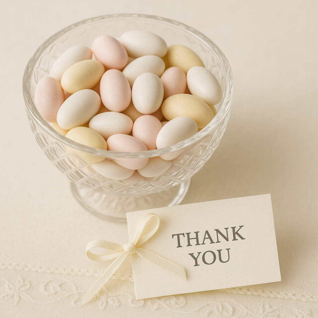 চিনির সিরাযুক্ত আমন্ড ক্যান্ডি। সুগারড আমন্ডস, দ্রাগিজ, কনফেত্তি প্রভৃতি নামেও পরিচিত। ইতালীয় বিয়েতে ঐতিহ্যগতভাবে পাঁচটি আমন্ড বা কাজুবাদাম আদতে নবদম্পতির জন্য পাঁচটি শুভকামনার প্রতিনিধিত্ব করে—সুস্বাস্থ্য, সম্পদ, আনন্দ, উর্বরতা ও দীর্ঘস্থায়িত্ব। এই কাজুবাদামগুলো কোনো সুসজ্জিত বাক্সে কিংবা বম্বোনিয়ারস নামে পরিচিত টিউল ব্যাগে ভরে পরিবেশন করা হয়। শুধু ইতালীয় নয়, গ্রিক বিয়েতেও এই মিষ্টান্নের উপস্থিতি থাকে; তবে ডাকা হয় কুফেতা নামে। সেখানেও ক্যান্ডিগুলোতে ছোট্ট ব্যাগে পুরে পরিবেশিত হয়; তবে গ্রিকরা এক ব্যাগে শুধু পাঁচটি নয়, যেকোনো বিজোড় সংখ্যক ক্যান্ডি পুরে দেন। আর সেগুলো পরিবেশন করা হয় রুপালি থালায়। এই বিজোড় সংখ্যা আদতে নবদম্পতির পরস্পরের সঙ্গে সবকিছু ভাগাভাগি করে নেওয়ার এবং আজীবন অবিচ্ছেদ্য থাকার প্রতীক বহন করে।