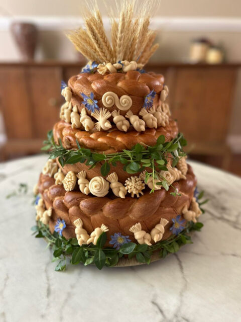 ইউক্রেনিয়ান ওয়েডিং ব্রেড। বুলগেরিয়া ও রাশিয়ার বিয়েতেও খুব পরিচিত ফুড আইটেম। এই ব্রেড আদতে একটি গোলাকার পেস্ট্রি, যা উর্বরতা, সুস্বাস্থ্য ও সমৃদ্ধির প্রতীক। ফুল, তারকা ও পায়রার মোটিফে সাজানো হয়, নবদম্পতির সুখী জীবন কামনা করে। ইউক্রেনিয়ান বিয়েগুলোতে বর ও কনে—উভয় পরিবারের সদস্যরা ব্রেডটি নিজ হাতে বানান, পরিবারে নতুন সদস্যকে স্বাগত জানাতে।