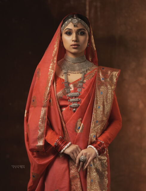 শরৎচন্দ্র চট্টোপাধ্যায়ের উপন্যাস ‘পরিণীতা’র মুখ্য চরিত্র। কৈলাস থেকে আগত পার্বতী যেন। রূপবতী, সাবলীল, চিন্তাশীল; আবার প্রেমময়ী। লালের উদ্ভাসে পূর্ণ। রেশমের কোমল বুনন জড়িয়ে তৈরি। গয়নার নকশায় পুরোনো রাজবাড়ির গল্প। প্রাকৃতিক লাবণ্যের স্পষ্টতা। কপালের লাল টিপে পূর্ণতা