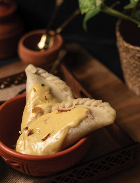 প্রণালি: পুর তৈরির জন্য প্যানে ঘি দিয়ে নারকেল ২-৩ মিনিট ভাজুন। এবার গুড় বা চিনি দিয়ে, কম আঁচে নেড়ে পুর শুকনো ও একটু আঠালো হলে নামিয়ে রাখুন। তারপর তাতে এলাচিগুঁড়া মিশিয়ে নিন।