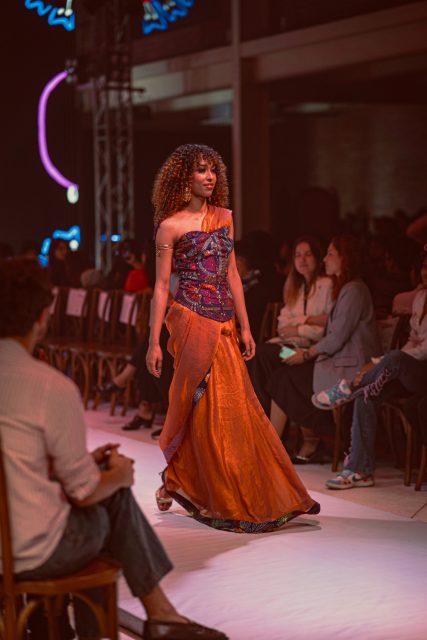 তাদের কালেকশন দেখিয়েছে, কীভাবে ঐতিহ্যবাহী মাটির গন্ধ সমসাময়িক ডিজাইনের সঙ্গে মিশে যায়। কখনো ব্লু ডাই, কখনো রিসাইকেলড ডেনিম, কখনো আবার আপসাইকেলড হোম-অ্যাকসেন্টসের মাধ্যমে। সব স্টল ছিল শতভাগ সাসটেইনেবল।