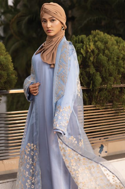 বাংলাদেশের আবহাওয়ায় আরামদায়কতার সঙ্গে ব্রিদেবল ফ্যাব্রিক ও ডিজাইন—দুয়েরই সন্ধি প্রয়োজন। খুব ভালো ফ্যাব্রিকে যেকোনো ডিজাইন করে নিলেই চলবে না; আবার দারুণ ফাংশনাল ডিজাইনে যেকোনো ফ্যাব্রিকও বেছে নেওয়া মানা। ফ্রন্ট ওপেন লেয়ারিংয়ের আরেকটি সুবিধাও রয়েছে। ইনডোর আর আউটডোরের টেম্পারেচারের তারতম্যে যে অস্বস্তি তৈরি হয়, তা মিটিয়ে নেওয়া সম্ভব। বাইরে তাপমাত্রা যখন পারদকে ঠেলে নিতে চাচ্ছে ওপরের দিকে, তখন অনেক অফিসের অন্দরেই আবার শীতলতার স্পর্শ। তাপানুকূল কক্ষ এখন আর বিলাসিতা নয়; বেশির ভাগ কর্মক্ষেত্রে গুরুত্বপূর্ণ সমাধান। তাপানুকূল রুমে মানিয়ে নিতে ফ্রন্ট ওপেন লেয়ারিং সিস্টেম দিতে পারে সমাধান। এর স্টাইলিং আইডিয়া জানা যায় মডেস্ট ফ্যাশন ব্র্যান্ড তাহুরের প্রতিষ্ঠাতা এবং সিইও হানিয়াম মারিয়া চৌধুরীর বয়ানে। তিনি বলেন, ‘ফেব্রুয়ারিতে তাপমাত্রা খানিকটা কম থাকে। এ সময়কে বলা যেতে পারে কোল্ড স্প্রিং। তিন লেয়ারে সম্পন্ন করা যেতে পারে লেয়ারিং। প্রথমে স্কিন হাগিং গেঞ্জি, ইনারে কামিজ এবং লেয়ারে শ্রাগ। আর বটমে পালাজো। এমন হতে পারে ওয়্যারড্রোব প্ল্যানিং। কেউ হেড ওয়্যার পরতে চাইলে পোশাক নয়, স্কিন টোনের সঙ্গে মিলিয়ে নেওয়া চাই রং। কারণ, হিজাব মূলত একটি অ্যাকসেসরি হিসেবে ড্রেসকে কমপ্লিমেন্ট করে। তাই ত্বকের সঙ্গে কেমন মানিয়েছে, তা ভাবার বিষয় বটে।’