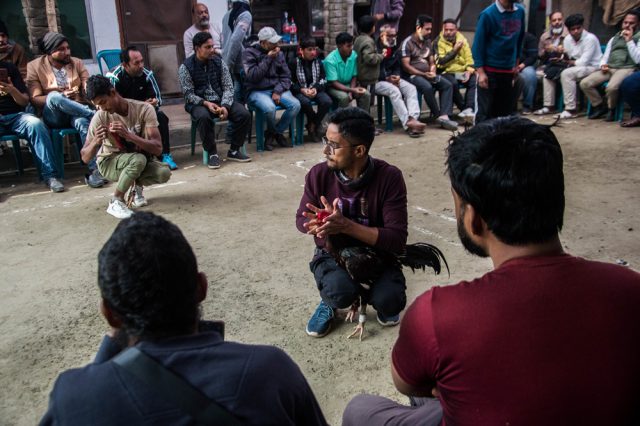 জানুয়ারির এক বিকেলে দলবল নিয়ে হাঁটছিলাম, খান মুহাম্মাদ মিরধা মসজিদের দিকে। হঠাৎ করে দলছুট হয়ে যাওয়া তানভীর সরকার লিংকন ফিরলেন আরেকজনকে সঙ্গে করে। তিনি দীন মুহাম্মাদ। পাঠশালার সিনিয়র। কথা প্রসঙ্গে হুট করেই দাওয়াত দিলেন পরদিন, পশ্চিম ধানমন্ডিতে। সেখানেই নাকি ঢাকার তাবৎ বড় বড় মুর্গবাজ এসে জড়ো হবেন। তারা তাদের আসলি মোরগ নিয়ে লড়বেন। এমন আমন্ত্রণ উপেক্ষা করার মতো মহৎ হইনি এখনো! তার ওপর বাড়ির পাশে! ফলে পরদিন সকাল ১০টায় ক্যামেরাকে সঙ্গী করে পৌঁছে গেলাম মুর্গবাজদের ঠিকানায়।
