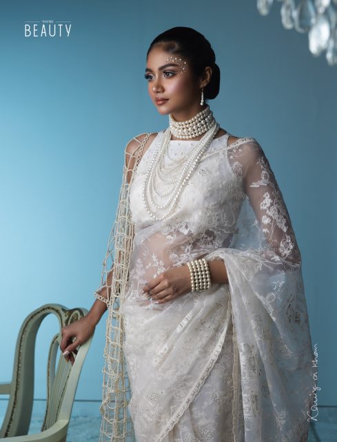 সফট, এলিগ্যান্ট ও ট্র্যাডিশনাল গ্ল্যাম, বেস স্কিন-লাইক, মিডিয়াম কাভারেজ, লুমিনাস ফিনিশ। যেন চাঁদমুখ। সাজবোধের স্কেলে দশে দশ। কখনো মূলমন্ত্র মিলান্তি; তো কখনো কনট্রাস্টে কাঙ্ক্ষিত লুক। কেশসজ্জা সহজাত। জোরজবরদস্তি নেই। উৎসবে উন্মুখ সবেতে। দুপুরের মেহমানদারি কিংবা জমাটি আড্ডা সেশন—বেশ মানিয়ে যাবে