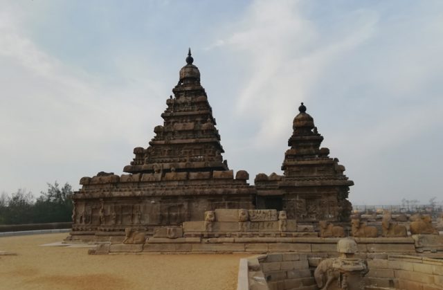 সপ্তম শতাব্দীতে সমুদ্রতটে সাতটি মন্দির নির্মিত হয়েছিল। এখন দুটি মাত্র দাঁড়িয়ে আছে। বাকিগুলো বৈরী আবহাওয়ায় কালের গর্ভে হারিয়ে গেছে। রাজা নরসিংহবর্মণ মন্দিরটি স্থাপন করেছিলেন মূলত শিবঠাকুরের পূজা দেবার জন্য। গ্রানাইট পাথরের মন্দিরটির ভেতরে তিনটি প্রার্থনাগৃহ আছে, দুটি শিবঠাকুরের আর একটি ভগবান বিষ্ণুর পূজার জন্য। সমুদ্রতট মন্দিরটি সমুদ্রের দিকে মুখ করে হয়েছিল, যাতে সূর্যকিরণ সরাসরি এসে মন্দিরে অবস্থিত শিবলিঙ্গে পড়ে। মন্দিরচত্বরটিও বিশাল। ঢোকার মুখেই সারি সারি নন্দী যেন মন্দির পাহারা দিচ্ছে। মূল মন্দিরের দেয়ালে ব্রহ্ম, বিষ্ণু, শিবঠাকুর ও দুর্গার ভাস্কর্য খোদাই করা আছে।