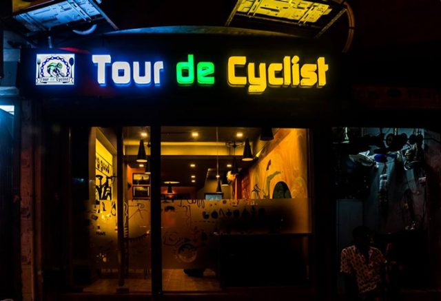 ঢাকার অলিগলিতে এই উঠতি তারুণ্যের ওপর গুরুত্ব দিয়ে ইদানীং নানা রকমের থিমে কাজ হচ্ছে। কোথাও থিম হচ্ছে মোটরসাইকেল, কোথাওবা ভ্যাম্পায়ার থিম আবার কোনোটা হসপিটাল। সেভাবেই কতটা পথ পেরোলে তবে পথিক বলা যায়- এই ভেবে সাজিয়ে তোলা হয়েছে একটি রেস্তোরাঁ। এর মালিকেরাও সাইকেল চালান। ভোজনালয়টির ডিজাইনার স্থপতি সিয়াম সাজিদ নিজেও সাইকেল চালান। কেউই পূর্ব পরিচিত নন, কিন্তু খুব অদ্ভুতভাবে তারা নিজেদের খুঁজে পেয়েছেন। এই রেস্তোরাঁ গোছানো হয়েছে খুব যত্নের সঙ্গে। নাম থেকে শুরু করে লোগো, অন্দরসজ্জা- সবই। মিরপুর ১১ নম্বর বাসস্ট্যান্ডের খুব কাছে এই রেস্তোরাঁ নাম ‘ট্যুর দে সাইক্লিস্ট…’। নামটি এসেছে ফ্রান্সের ‘ট্যুর দ্য ফ্রঁস’ থেকে। এটা এমন এক উৎসব, যাতে ফ্রান্সের সাইকেলপ্রেমীরা কয়েক দিন ধরে সাইকেলের রেস করে থাকেন দেশজুড়ে। এই বিশেষ দ্বিচক্র যানটির প্রথম খোঁজও মেলে ফরাসি সাহিত্যে। যদিও আমেরিকা, ইংল্যান্ড ও জার্মানি এই দাবি করে থাকে। বিশ্বব্যাপী সবার ভালোবাসার এই যান সম্প্রতি পৃথিবীর বুকে তার ১৫০ বছর পূর্ণ করেছে।