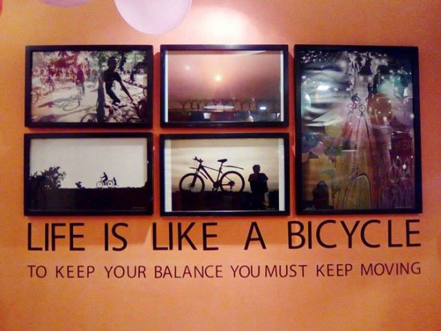 সাইকেলকে চিন্তার কেন্দ্রে রেখে আগেও অনেক রেস্তোরাঁ হয়েছে নানা দেশে এবং খুব সম্ভবত বাংলাদেশেও। কিন্তু কিছু সাইকেলপ্রেমী, মালিকপক্ষ এবং ডিজাইনার পক্ষের সীমিত পরিসরে এমন অসামান্য কাজ বোধ হয় আর একটিও নেই। না হলে রেস্তোরাঁয় ঢুকতে ফুটপাতে দেখা মিলত না বিশাল এর গ্রাফিতির, যেখানে দেখা যায় একজন সাইকেল আরোহী পুরো শহরে স্বপ্ন ছড়িয়ে চলেছে।