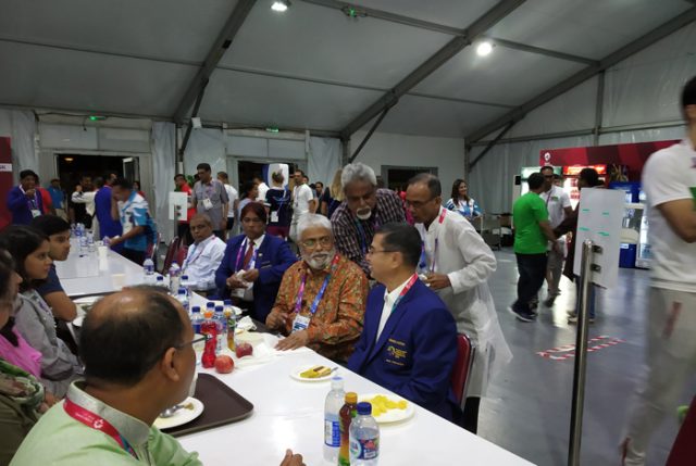 গেমস ভিলেজের ডাইনিংয়ে বিওএ প্রেসিডেন্টের সঙ্গে কর্মকর্তা ও সাংবাদিকেরা