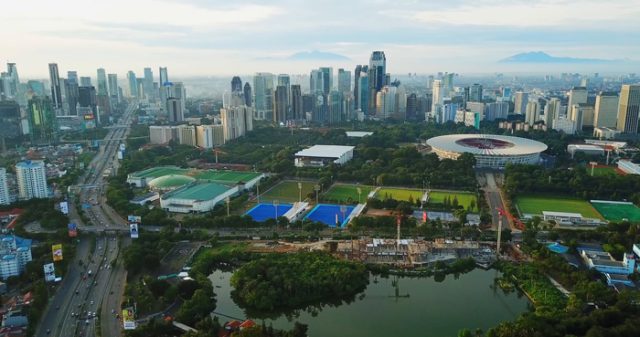 এই ক্রীড়া কমপ্লেক্স এলাকাটি হলো মধ্য জাকার্তার তানাহ আবাঙের গেলোরায়। মূল স্টেডিয়ামের চারপাশেই সব স্টেডিয়াম আর অ্যারেনা। এর এক পাশেই রয়েছে জাকার্তা ইন্টারন্যাশনাল কনভেনশন সেন্টার। এখানে ছিল মার্শাল আর্ট, অসিচালনা, কুস্তি ইত্যাদির ভেন্যু। আর মেইন প্রেস সেন্টার (এমপিসি) ও মেইন ব্রডকাস্টিং সেন্টার (এমবিসি)। এ ছাড়া ভিলেজের কাছে কেমায়োরানে জি এক্সপোতে অনুষ্ঠিত হয়েছে ভারোত্তোলন, জিমন্যাস্টিকস, ব্রিজ ইত্যাদি।
