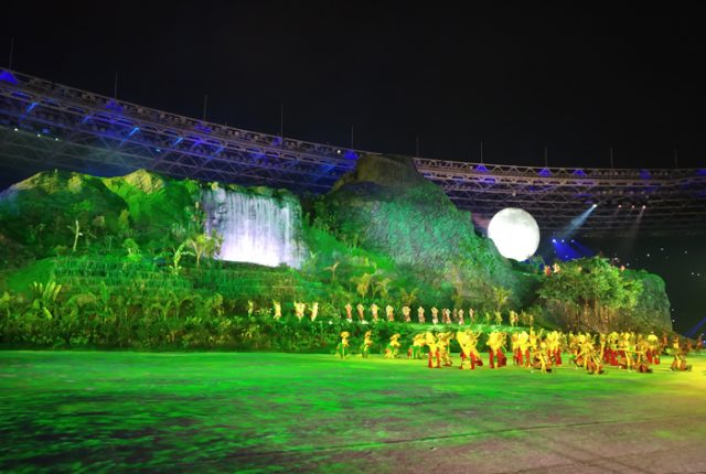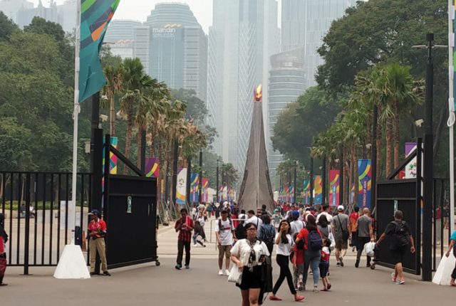 উদ্বোধনী অনুষ্ঠান হয়েছে মেইন স্টেডিয়ামে। গেলোরা বুঙ কর্ণ মেইন স্টেডিয়াম। আগে নাম ছিল সেনাইয়ান মেইন স্টেডিয়াম। একটু বলে রাখা ভালো, ইন্দোনেশিয়ার প্রথম প্রেসিডেন্ট ছিলেন সুকর্ণ। তাঁকে ইন্দোনেশিয়ানরা শ্রদ্ধায়, ভালোবাসায় বুঙ কর্ণ বা ভাই বা কমরেড সম্বোধন করে থাকে। এই স্টডিয়ামসহ পুরো স্পোর্টস কমপ্লেক্স তৈরি শুরু হয় ১৯৬০ সালের ফেব্রুয়ারি মাসে। শেষ হয় ১৯৬২ সালে। আর সে বছরের ২৪ আগস্ট থেকে ৪ সেপ্টেম্বর অনুষ্ঠিত হয় এশিয়ান গেমস। সেটা ছিল চতুর্থ এশিয়ান গেমস। আর এবার ছিল এই এশীয় বহু ক্রীড়া আসরের অষ্টাদশ সংস্করণ।