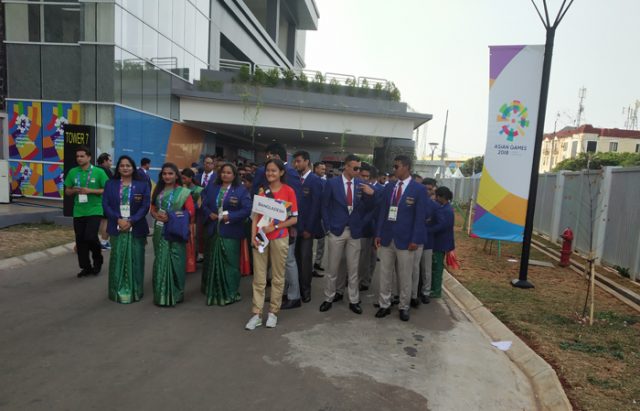 যা হোক, ভার্চ্যুয়াল আর অ্যাকচুয়াল, ঐতিহ্য আর আধুনিকতা, বর্তমান আর ভবিষ্যৎ, অ্যানালগ আর ডিজিটাল- সবই উপস্থাপিত হয়েছে উদ্বোধনীর মুগ্ধ আয়োজনে। দেখানো হয়েছে ইতিহাসের পথ বেয়ে আজকের অবস্থানে উন্নীত ইন্দোনেশিয়ার সগর্ব পদচারণা। আমরা যথারীতি তৈরি হয়ে গেমস ভিলেজ থেকে রওনা হই তিনটা নাগাদ। সব দলকেই প্রথমে বসানো হয় সুইমিংপুলে। সেখানে দেওয়া হয় নাশতা। কিছুক্ষণ বিশ্রামের পর মূল স্টেডিয়ামে প্রবেশের আনুষ্ঠানিকতা। উদ্বোধনী আর সমাপনীর জন্য আমাদের সঙ্গে যোগ দেয় আরেকজন ভলান্টিয়ার সাফিরা। এবারের উদ্বোধনীর আয়োজনে ছিল ভিন্নতা। বাংলাদেশের পতাকা বহন করে ভারোত্তোলক মাবিয়া আক্তার সীমান্ত। মার্চপাস্টে দলগুলোকে সাধারণত দাঁড়িয়ে থাকতে হয়। এবার তা হয়নি। অনুষ্ঠান আগেই শুরু হয়েছিল। দলগুলো তারই মাঝে একে একে প্রবেশ করে। মাবিয়া ছিল সবার আগে। এবার আমিও মার্চপাস্টের অংশ। এ এক অন্য রকম অভিজ্ঞতা। অনন্য অনুভূতি। স্টেডিয়ামে ঢুকে কিছুদূর যাওয়ার পর প্রতিটি দলের জন্য নির্ধারিত চেয়ারে গিয়ে বসি আমরা। দাঁড়িয়ে কষ্ট করতে হয়নি। আর বৃষ্টির কথা মাথায় রেখে প্রত্যেকের চেয়ারের নিচে রাখা ছিল রেইনকোট।