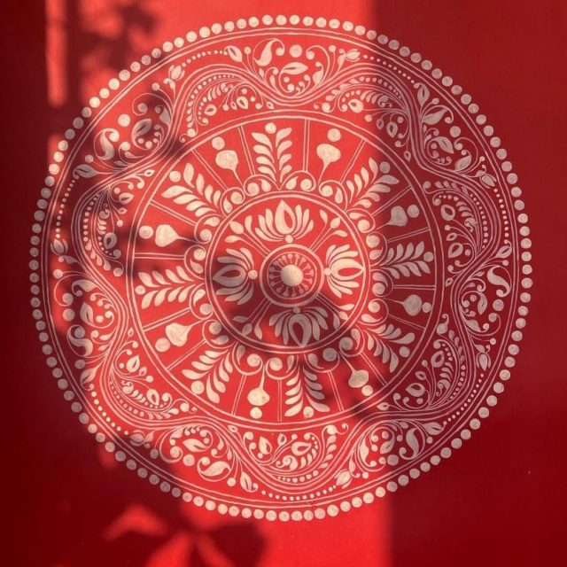 বাংলার লোকশিল্পের অন্যতম প্রাচীন ও নান্দনিক রূপ আলপনা, যা মূলত লেপন বা রঙের প্রলেপের মাধ্যমে তৈরি একধরনের কারুকার্য। সহজ রেখা, সীমিত রং এবং বিমূর্ত নকশার সমন্বয়ে গড়ে ওঠা এই শিল্পরীতি দীর্ঘদিন ধরে বাঙালির জীবনে গভীরভাবে জড়িত। বাড়ির আঙিনা, চৌকাঠ, বিয়ের পিঁড়ি কিংবা বৈশাখী বরণ আয়োজন—সবখানেই আলপনার ব্যবহার লক্ষণীয়। অনেক গবেষকের মতে, ব্রত ও পূজার সঙ্গে যুক্ত আলপনার উৎপত্তি প্রাক্-আর্য যুগে। তবে আধুনিক সময়ে এর রূপ আরও বৈচিত্র্যময় হয়েছে, যেখানে বিমূর্ততা, অলংকরণ এবং ধর্মনিরপেক্ষ ভাবনার সমন্বয়ে আলপনা নতুন মাত্রা পেয়েছে।