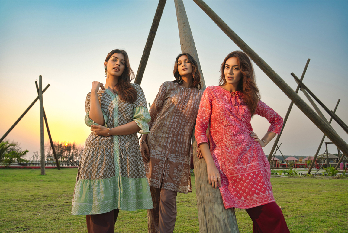নারীদের ঈদ-উল-আজহার কালেকশনে থাকছে এথনিক, ক্যাজুয়াল ও ওয়েস্টার্ন ফিউশন পোশাকের ডিজাইন। থাকছে লং কামিজ, সালোয়ার কামিজ, সিঙ্গেল কামিজ, গাউন, আবায়া, স্কার্ট সেট, শ্রাগ ও কেপ স্টাইল টপ এবং কটন ও হাফ সিল্ক শাড়ি। এ ছাড়াও এক্সক্লুসিভ পার্টি লাইন ‘নার্গিসাস’-এ দেখা মিলছে মসলিনের গাউন, ভারি কারচুপি করা সালোয়ার কামিজ ও কাফতান। ঈদের সকালের আরামদায়ক আউটফিট হিসেবে থাকছে শর্ট ও মিড-লেংথ টিউনিক, শার্ট-টপস, টপ-বটম সেট ও আরামদায়ক বটমসের সমাহার।