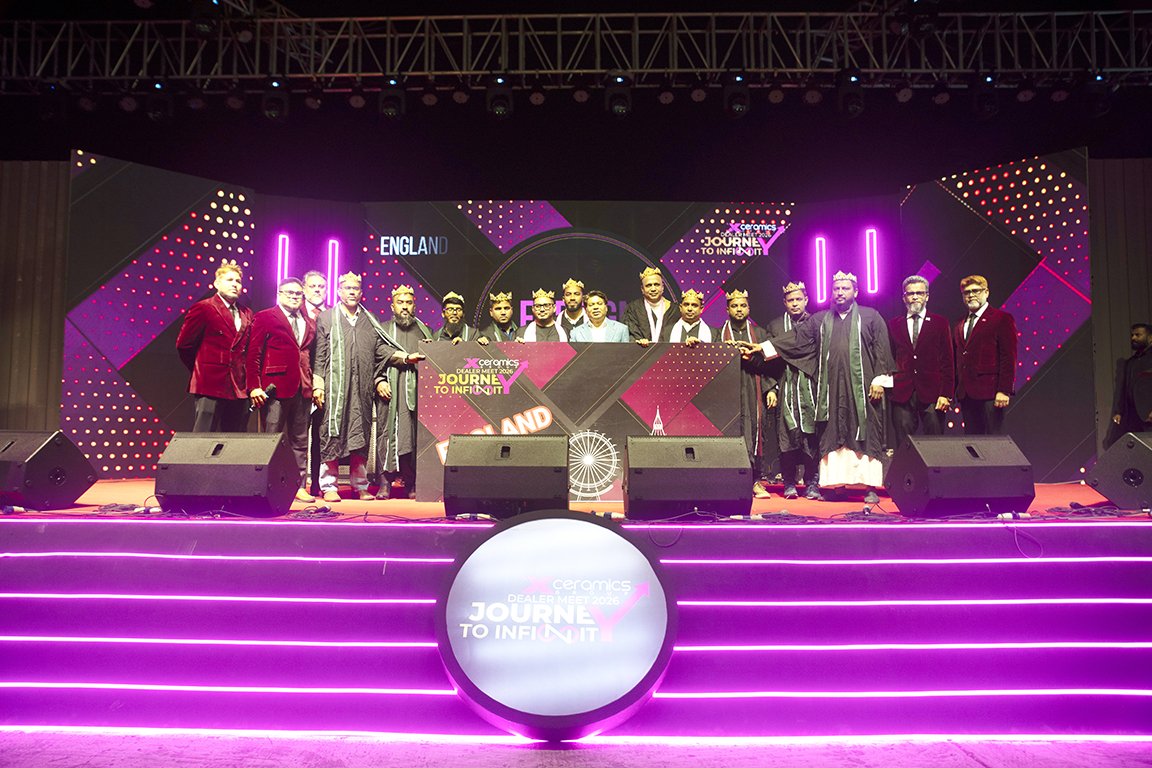 ‘জার্নি টু ইনফিনিটি’ থিমকে ধারণ করে এক্স সিরামিক্স ডিলার মিট ২০২৬– এক্স সিরামিক্সের যাত্রায় একটি গুরুত্বপূর্ণ মাইলফলক হিসেবে চিহ্নিত হলো; যা সীমা অতিক্রম করে শিল্পের মান উন্নয়নে নেতৃত্ব দেওয়া এবং ইতালিয়ান হেরিটেজে ভিত্তি করে বৈশ্বিক দৃষ্টিভঙ্গিসম্পন্ন ভবিষ্যৎ গড়ার দৃঢ় বার্তা বহন করে।