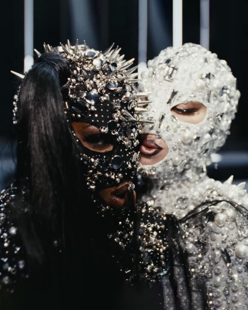 একটি সাদা, অন্যটি কালো। মুক্তা আর ছোট-বড় নানা আকারের ক্রিস্টাল পাথরের কারুকার্যখচিত করসেট বডি-স্যুটে লেডি গাগা। আর দোচিকে দেখা যাবে সিকুইনের সঙ্গে ঝলমলে ক্রিস্টাল বসানো কালো বডি-স্যুটে। গৌরব লিখেছেন, দুটি কস্টিউমে হাতে সেলাই করে বসানো হয়েছে ৩ হাজারের বেশি ক্রিস্টাল; যাতে ব্যয় হয়েছে ৮০০ ঘণ্টার বেশি সময়।