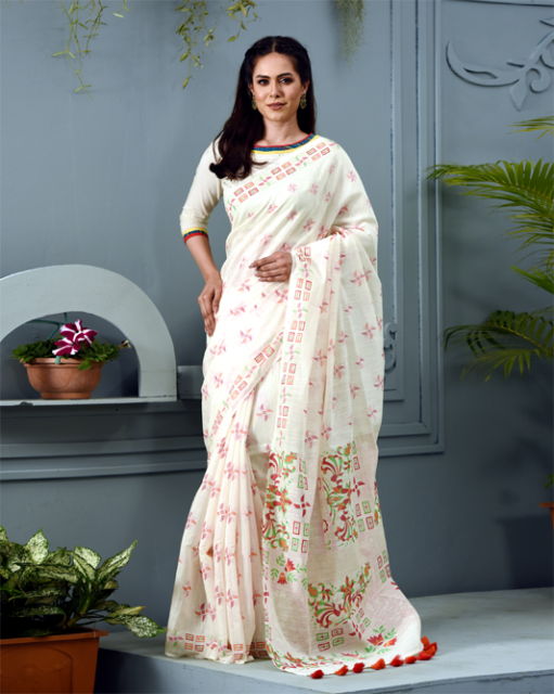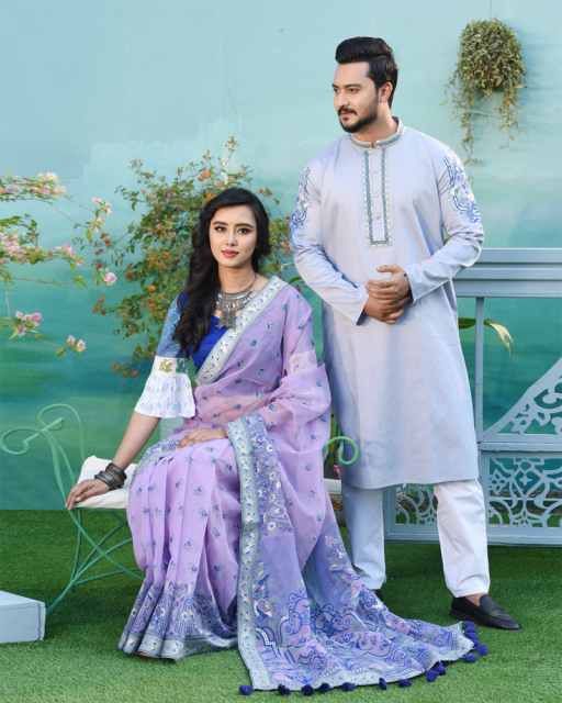 পরিবেশ ও আবহাওয়ার সঙ্গে সঙ্গে আরামদায়ক বিষয়টি মাথায় রেখে ফ্যাব্রিক হিসেবে নেওয়া হয়েছে কটন, জ্যাকার্ড কটন, সুইস কটন, হ্যান্ডলুম কটন, লিনেন, জর্জেট, সিল্ক, জয়শ্রী সিল্ক, হাফ সিল্ক ও অরগ্যাঞ্জা। লাল-সাদার সমন্বয় তো রয়েছেই। সঙ্গে আরও নানা রং—মেরুন, ম্যাজেন্টা, ক্রিমসন রেড, পিচ, পিঙ্ক, কোরাল পিঙ্ক, ব্রিক রেড, প্লাম রেড, বারগ্যান্ডি, বিস্কুটি, নেভি, টেন-ব্রাউনের ছোঁয়ায় পোশাকগুলো পেয়েছে বর্ণিল রূপ ।
