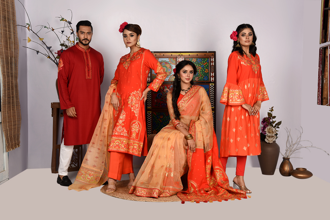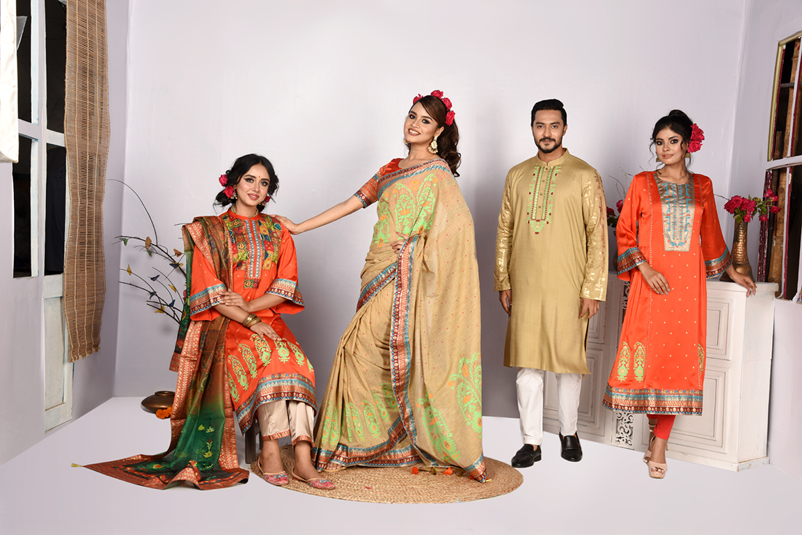আরামদায়ক, সময় উপযোগী ও উৎসবধর্মী পোশাকের আয়োজনকে ঘিরে করা হয়েছে শাড়ি, সালোয়ার-কামিজ, কুর্তি, টপস, টিউনিক ও স্কার্ট। ছেলেদের জন্য রয়েছে রেগুলার ও ফিটেড পাঞ্জাবি। এ ছাড়াও পাওয়া যাবে স্মার্ট ক্যাজুয়াল শার্ট, এথনিক শার্ট ও ফতুয়া।