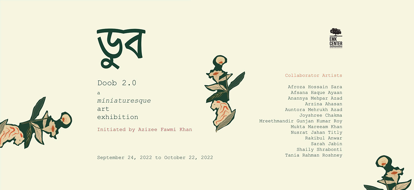 রাজধানীর ধানমন্ডির ইএমকে সেন্টারে চলছে মিনিয়েচার-সুলভ দলীয় শিল্প প্রদর্শনী ‘ডুব ২.০’। ২৪ সেপ্টেম্বর ২০২২, শনিবার উদ্বোধন হয় এর।