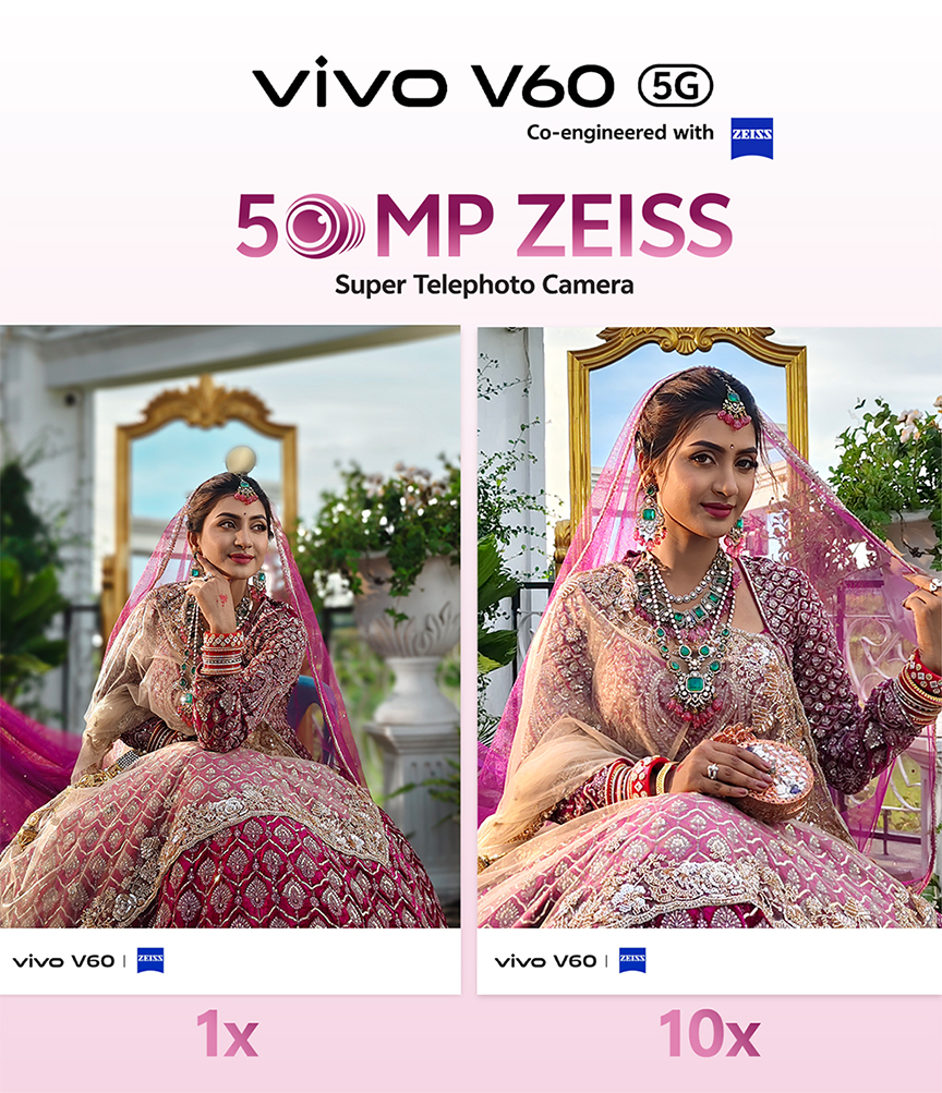 আরও বলা হয়, বিয়ের দিনটি সবার জীবনের জন্য একটি বিশেষ মুহূর্ত। বর-কনে এমনকি অতিথিদের জন্য মুহূর্তগুলো হয় আবেগে জড়ানো। ক্ষণস্থায়ী হলেও মুহূর্তগুলোর রেশ রয়ে যায় আজীবনের জন্য। যা পুনরায় অনুভব করা সম্ভব হয় না। ভিভো ভি৬০-এর টেলিফটো ওয়েডিং পোর্ট্রেট মোডের ৮৫–১০০ মিমি ফোকাল লেন্স এই মুহূর্তগুলোকে রূপান্তরিত করে চিরস্থায়ী স্মৃতিতে। ছবিগুলোতে ধরা পড়ে প্রাকৃতিক দৃষ্টিকোণ, নিখুঁত বিস্তারিত এবং সিনেমাটিক বোকেহ– ঠিক যেন কোনো পেশাদার মানের ফটোগ্রাফি। বর-কনের শুভদৃষ্টি বা ভিড়ের মধ্যে নাচের আনন্দ, জাইস টেলিফটো লেন্স নিশ্চিত করে, দূরত্ব বা ঝাপসার কারণে যেন কোনো ছবি হারিয়ে না যায়।