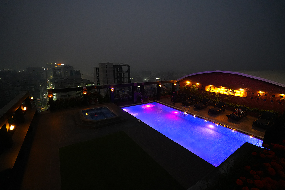 ঢাকা রিজেন্সির সুইমিং পুল কোলাহলপূর্ণ শহরে এক নির্জন স্বর্গীয় স্থান! সবুজ ও আরামদায়ক লাউঞ্জার বেষ্টিত পুল এলাকাটি শহুরে বিশৃঙ্খল পরিবেশ থেকে পালিয়ে নির্মল পরিবেশে কিছুটা সময় অতিবাহিত করার সুযোগ করে দেয়।