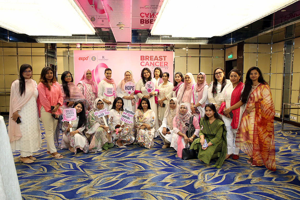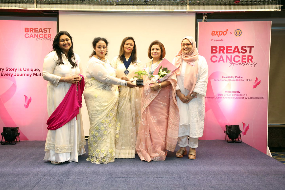 অনুষ্ঠানে প্রধান অতিথি ছিলেন ইনার হুইল ডিসট্রিক্ট ৩২৮-এর ডিসট্রিক্ট চেয়ারম্যান জেসরিনা হায়দার। মূল প্রবন্ধ উপস্থাপন করেন শহীদ সোহরাওয়ার্দী মেডিকেল কলেজ ও হাসপাতালের স্ত্রীরোগ ও প্রসূতিবিদ্যা বিভাগের অধ্যাপক ডা. ইসরাত জাহান (ইলা)। অনুষ্ঠানটির নেতৃত্বদানকারী এক্সপো গ্রুপ, বাংলাদেশের চিফ হিউম্যান রিসোর্সেস অফিসার আয়েশা সাঈদ বলেন, ‘আমাদের প্রতিষ্ঠানের আসল শক্তি আমাদের মানুষ। আমরা শুধু তাদের পেশাগত উন্নয়ন নয়; শারিরিক ও মানসিক স্বাস্থ্যের দিকেও সমান গুরুত্ব দিই। এই উদ্যোগ তারই প্রতিফলন। ব্রেস্ট ক্যানসার সচেতনতা শুধু একদিনের বিষয় নয়; বরং নিয়মিত স্বাস্থ্য পরীক্ষায় উৎসাহিত করা, এই লড়াইয়ে থাকা নারীদের পাশে থাকা এবং সহমর্মিতা ও যত্নের সংস্কৃতি গড়ে তোলাই আমাদের লক্ষ্য।’