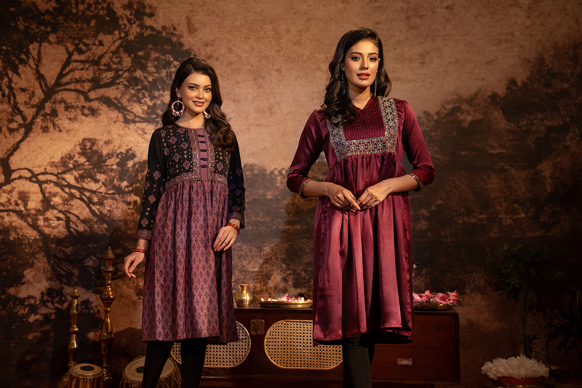 স্টাইলিশ ও ভিন্নধর্মী কাটে তৈরি কুর্তি ফেস্টিভ লুককে এনে দেবে নতুন রূপ। সূক্ষ্ম এমব্রয়ডারি প্রিন্ট, পিনটাক ও গ্যাদার প্যাটার্নে সাজানো কুর্তিগুলো হবে অফিস, আড্ডা কিংবা উৎসব– সব জায়গার জন্য আদর্শ পছন্দ।