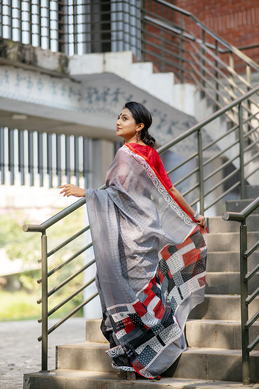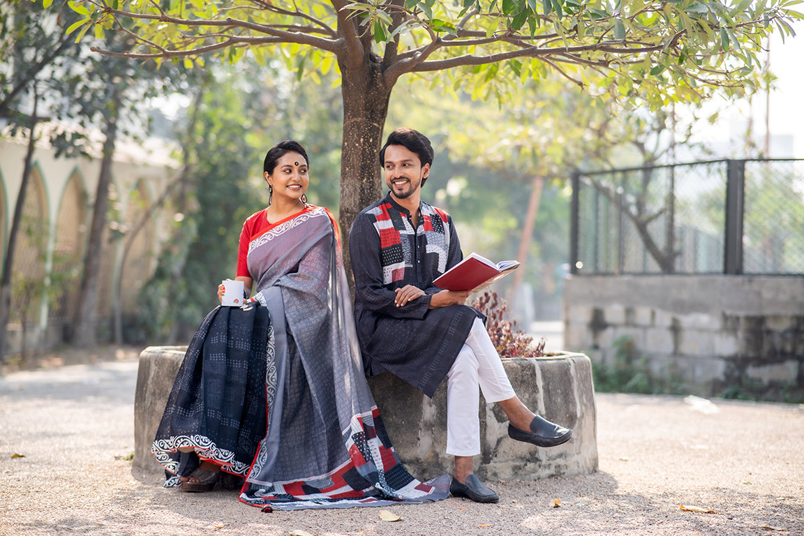 হাফসিল্ক, নানান ধরনের কটন ও ভয়েল কাপড়ে স্ক্রিনপ্রিন্ট, কাটিং-সুইংয়ের সূক্ষ্ম কারুকাজে ফুটে উঠেছে একুশের আবহ। কখনো কালো-লালের সংযমী আবেদন, কখনো বর্ণমালার ছড়িয়ে থাকা ছাপ প্রতিটি নকশায় রয়েছে ভাষার প্রতি ভালোবাসার স্বাক্ষর। একুশ মানেই তো কেবল শোক নয়, তা আত্মমর্যাদার দীপ্তি; তাই প্রতিটি পোশাকে চেষ্টা করা হয়েছে ঐতিহ্য ও সমকালীনতার মেলবন্ধন ঘটানোর।