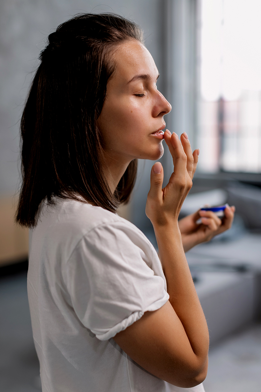 শুষ্ক ঠোঁটে সর্বনাশ! তাই ঠোঁটকে আর্দ্র রাখতে দিনজুড়ে ব্যবহার করতে পারেন কোনো নার্সিশিং লিপ বাম কিংবা ময়েশ্চারাইজার। শিয়া বাটার, কোকোনাট ওয়েল কিংবা হায়ালুরনিক অ্যাসিড সমৃদ্ধ হাইড্রেটিং ইনগ্রেডিয়েন্ট রয়েছে, এমন পণ্য খুঁজে নিতে পারেন এ ক্ষেত্রে।