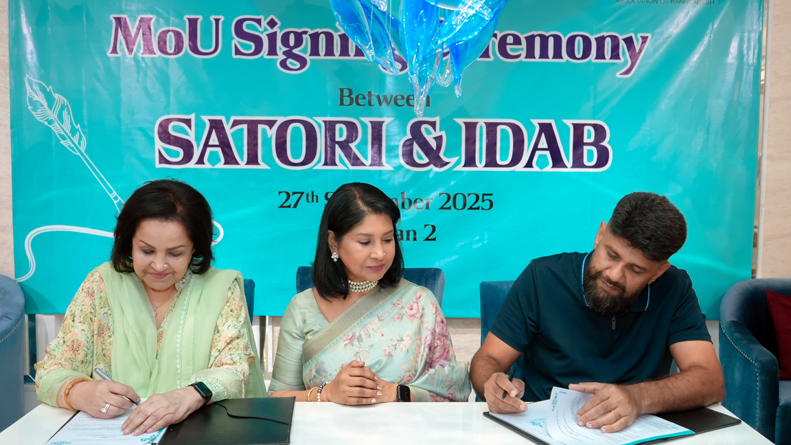 শনিবার (২৭ সেপ্টেম্বর ২০২৫) রাজধানীর গুলশান-২-এ প্রিমিয়াম ডেকোর ব্র্যান্ড সাতোরি এবং ইন্টেরিয়র ডিজাইনারস অ্যাসোসিয়েশন অব বাংলাদেশ (IDAB) নতুন এক পার্টনারশিপ ঘোষণা করেছে।