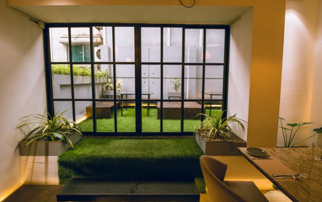 অন্দরসজ্জা নান্দনিক। আসনবিন্যাসেও অভিজ্ঞতার ছাপ। টোনাটুনিদের জন্য দুজনের টেবিল থেকে শুরু করে পারিবারিক ভোজের জন্য বড় পরিসরের আয়োজন- চাহিদানুগ আসন আর পরিসর বিন্যাস। তিনতলা ভবনের দুটো তলাজুড়ে ২৬০ জন পর্যন্ত আসনব্যবস্থা। তবে নজর কাড়ে বহিরাঙ্গন। ধবধবে সাদার মাঝে সবুজ কৃত্রিম ঘাসের কার্পেটে মোড়ানো উঠোনে সাজিয়ে রাখা চেয়ার-টেবিল, দেখলেই মনে হবে এক পেয়ালা কফি নিয়ে এখানে খানিকটা জিরিয়ে যাই। নৈশালোকে উঠোনটা সেজে ওঠে আলোর মালায়, তখন মনে হয় কোনো স্বপ্নদ্বীপ! বুর্জ আল খলিফা যাদের হাতে গড়া, সেই ইমার প্রপার্টিজের বেশ কয়েকটি প্রতিষ্ঠানে কাজ করেছেন কাজী। বিশ্বের উচ্চতম দালানে সামলেছেন মধ্যপ্রাচ্যের নানা গোত্রের রাজ-অতিথিদের। তাই তো পরিচ্ছন্নতার ব্যাপারে খুবই সচেষ্ট। তিনতলাজুড়েই হেঁশেল, পাচকেরাও অভিজ্ঞ। ওয়াশরুমও ঝকঝকে, পরিপাটি।