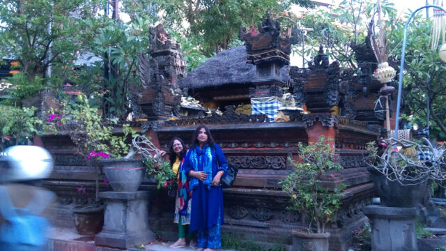 কেন বালি রাজার দেশ বলা হলো? ছোটবেলা ঠাকুমার মুখে রামায়ণের গল্প শুনতাম। এই মিথের কাহিনিতে রাম, সুগ্রীব আর রাবণের যুদ্ধকালীন বালি দ্বীপের যে বর্ণনা পাওয়া যায়, তা অত্যন্ত আকর্ষণীয়। ভেবে আশ্চর্য হতাম- চারপাশে সমুদ্র, উঁচু উঁচু ঢেউ, মাঝখানে দ্বীপ; কেমন হবে দিব্যচক্ষুতে দেখতে! আমার সঙ্গী সেলিনা (রাখী) এবং জান্নাত আপা।