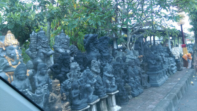 আমরা ব্যারিকেড পর্যন্ত গেলাম। দেখে মনেও হলো না, যেকোনো সময় ভয়ংকর কিছু ঘটে যেতে পারে। পর্যটকদের জন্য সারে সারে বসেছে দোকানপাট। অল্পস্বল্প ট্র্যাডিশনাল জিনিসপত্র কিনলাম। নানা জাতের স্থানীয় ফল নিয়ে পসরা বসেছে। কিছু খেলাম, কিছু সঙ্গে নিয়ে নিলাম হোটেলে খাব বলে। ফেরার পথে নজরে পড়ার মতো ছিল স্ট্যাচু। বিভিন্ন রকম পাথর কেটে বানানো সেসব। ড্রাইভার বলল, বালির অর্থনীতিতে স্থানীয় স্ট্যাচু বড় ভূমিকা রাখে। পৃথিবীর বিভিন্ন দেশে এগুলো এক্সপোর্ট হয়। এক জায়গায় নেমে আমরা দেখলাম, টুকিটাকি জিনিস কিনলাম। যেমন ফটোফ্রেম, ছোট ছোট শোপিস ইত্যাদি।