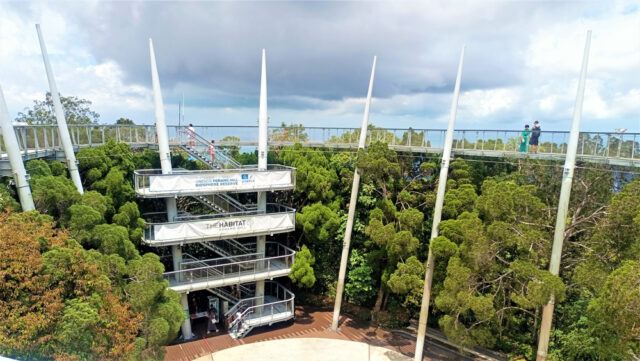এবার অবশ্য গাছপালার ঠাসবুনোটের মাঝখান দিয়ে এগোবার সময় চোখে পড়ল কয়েক জাতের পাখি। তারপর বিশাল আকারের একটি কাঠবিড়ালি নজর কাড়ল। জানা ছিল, এর নাম ব্ল্যাক জায়ান্ট স্কুইরাল বা মালয়েশিয়ান জায়ান্ট স্কুইরাল। তারপরই চলে এলাম স্কাইভিউ ওয়াক নামে অদ্ভুত সুন্দর এক স্থানে। এখানে টিকিট কেটে আসার এটিও একটি বড় কারণ। প্যাঁচানো সিঁড়ি উঠে গেছে বেশ ওপরে। আমরা সেই সিঁড়ি ধরে ঘুরতে ঘুরতে একেবারে ওপরে উঠে পড়লাম। মুহূর্তেই আশ্চর্য এক পৃথিবীর দরজা যেন খুলে গেল আমাদের সামনে।