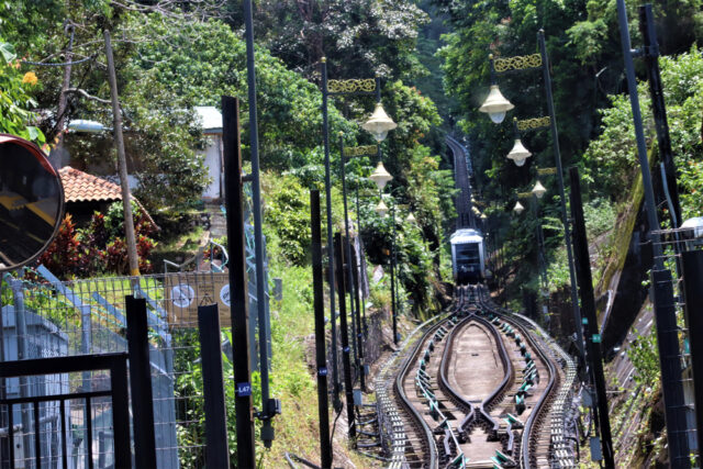 পেনাং পৌঁছানোর তৃতীয় দিন সকালে রাজ্যটির রাজধানী জর্জটাউন থেকে আমরা গেলাম পেনাং হিলে। সেখানে গিয়ে জানলাম, শুধু ওই ট্রেনে চাপতেই (আসা-যাওয়া) জনপ্রতি গুনতে হবে ৩০ রিঙ্গিত। তখন এক রিঙ্গিত মানে আমাদের ২৫ টাকার সমান। এদিকে জঙ্গল আমাকে যত টানে, পুনম বাদে অন্যদের সিকি ভাগও নয়। তাই ওয়াফিকাসহ বাকিরা গেল পাশের এক পাহাড়ে, সেলিমের গাড়িতে চেপে ঘুরতে। আমি আর পুনম টিকিট কেটে চড়ে বসলাম ট্রেন বা ট্রাম—যা-ই বলি, তাতে। পরে অবশ্য অন্তর্জাল ঘেঁটে নিশ্চিত হয়েছি, এটি ট্রেনই; তবে বিশেষ ধরনের। এর ইতিহাস বেশ পুরোনো। এই রেলপথ ও ট্রেন পরিচিত ফিউনিকুলার রেলওয়ে নামে। সাধারণত খাড়া পথ উঠতে এ ধরনের ট্রেন ব্যবহার করা হয়। এতে দুটি বগি পরস্পর জোড়া লাগানো; দেখে মনে হয়, যেন একটিই।