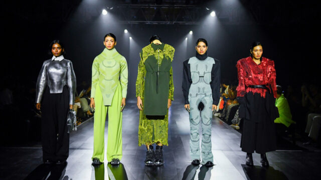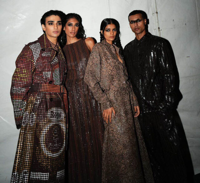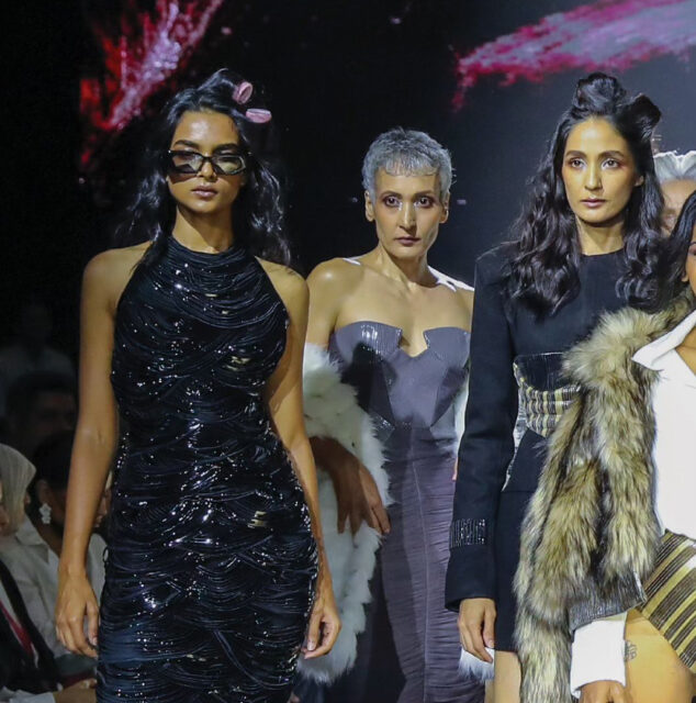 এই দিনে ডিজাইনার অনুরাগ গুপ্তার পোশাকেও মঞ্চ মাতাতে দেখা গেছে মডেলদের। ফরাসি বিপ্লবপ্রাণিত ‘হিম’ নামের কালেকশনটি মূর্ত হয়েছিল আভাঁ-গার্দ অ্যাসথেটিক। পোশাকে সাহসী রং আর নিরীক্ষাপ্রাণিত সব শিলুয়েটের ব্যবহার পষ্ট। প্রকাশিত ভারতীয় ফ্যাশন শিল্পের পটপরিবর্তনের প্রতিশ্রুতি। মুম্বাইবেসড ডিজাইনার মধুমিতা নাথের ব্র্যান্ড ‘এক কথা’র কালেকশনে ছিল লাক্সারিয়াস সাসটেইনেবল রেডি টু ওয়্যার ওমেনজ ক্লদিং, ‘মোমেন্টস অ্যান্ড মেমোরিজ’ নামে। ইঞ্জিনিয়ার থেকে পুরোদস্তুর ডিজাইনার বনে যাওয়া অ্যালেন অ্যালেক্সান্ডার লঞ্চ করেন তার লেবেল ‘কলিকাল’। অর্গানিক ম্যাটেরিয়ালে তৈরি পোশাকগুলোতে স্টাইল এবং সাসটেইনেবিলিটির দারুণ সংমিশ্রণ চোখে পড়ে।
