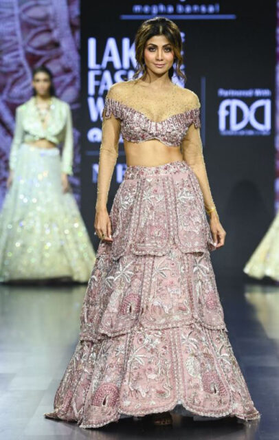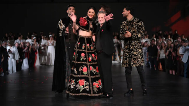 রোহিত বালের সিগনেচার পিসে। তার পরনে ছিল বড় বড় গোলাপ ব্ল্যাক লেহেঙ্গা, ব্রালেট ব্লাউজ আর কেপ স্টাইল ব্লেজার। হোয়াট অ্যান এন্ডিং!