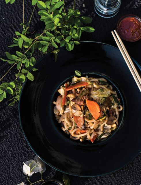 উপকরণ (মূল): সেদ্ধ করা ইয়াকিসোবা নুডলস, ইনস্ট্যান্ট নুডলস বা সরু স্প্যাগেটি ২ প্যাকেট (৩০০ গ্রাম), গরুর মাংস (জুলিয়ান করে কাটা) ১ কাপ, স্প্রিং অনিয়ন ১/২টি (৩০ গ্রাম), বাঁধাকপি ১০০ গ্রাম, মোইয়াশি (অঙ্কুরিত শিমের বিচি) ৫০ গ্রাম, গাজর ১টি, তিলের তেল (ভাজার জন্য) পরিমাণমতো, ভাজা সাদা তিল (পরিবেশনের জন্য) সামান্য এবং লেবু (টুকরা করা) ১টি (পরিবেশনের জন্য, ঐচ্ছিক)।